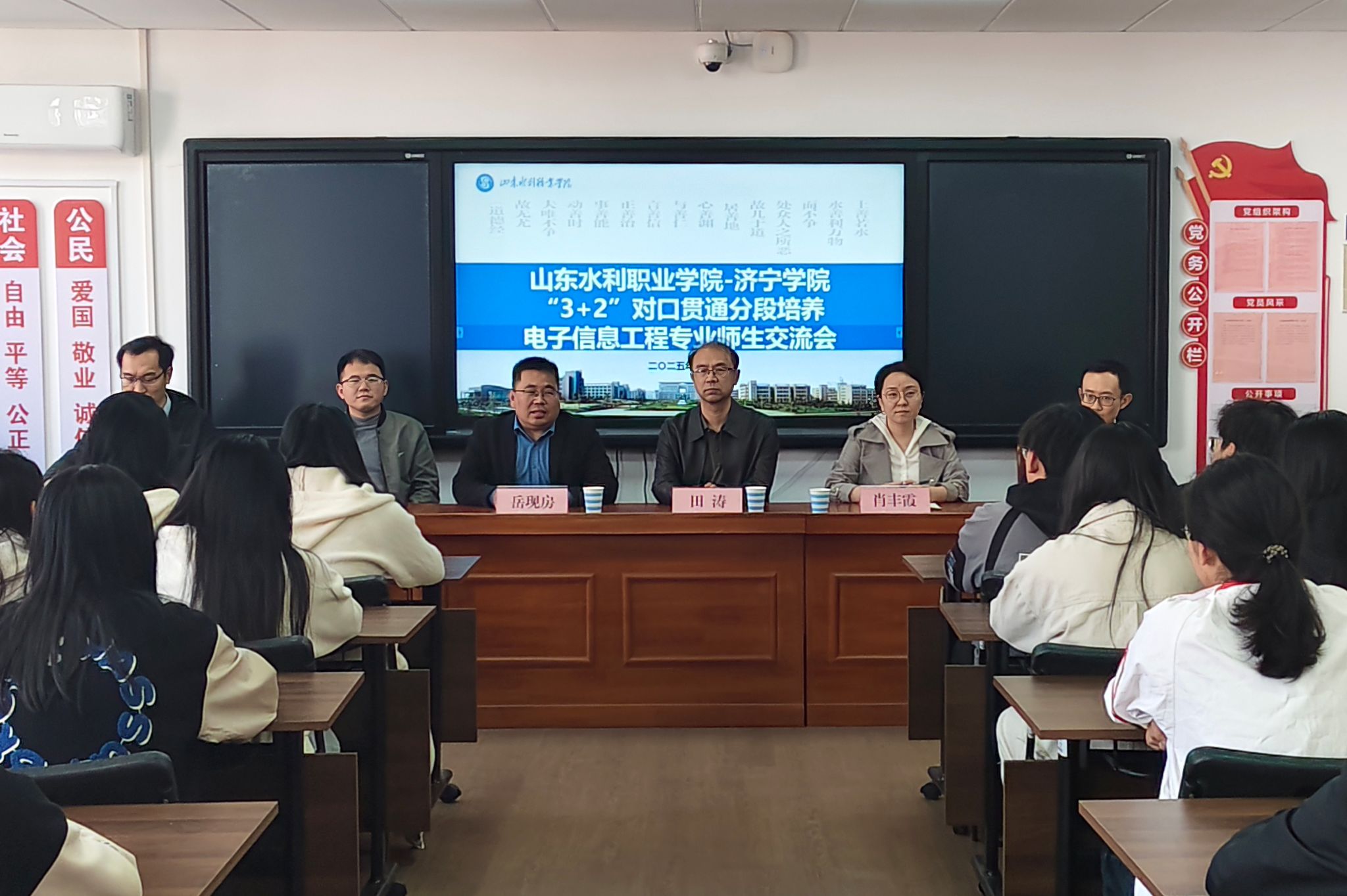 为促进职业教育与普通教育协同创新、优势互补,更好地开展专本贯通分段培养工作,3月26日,济宁学院物理与电子工程学院副院长岳现房一行来校调研交流。信息工程系主任黄鲁新、专业教师及电子信息工程专本贯通班全体学生参加座谈交流。