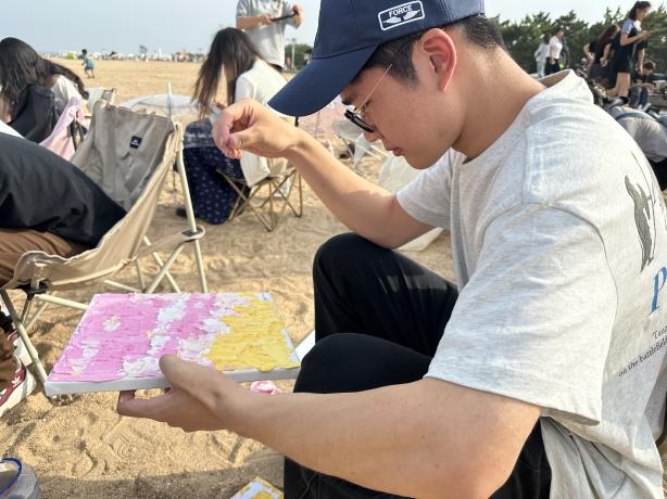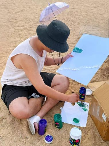 活动现场,参与者将细腻的沙子与色彩斑斓的环保颜料结合,调制出富有肌理质感的特殊“涂料”,将海浪、贝壳、星辰等自然元素融入画作。海浪翻涌的动态、贝壳承载的岁月痕迹、星辰闪烁的神秘,都在颜料与沙粒的交织中鲜活呈现。湿润的沙粒与环保颜料碰撞出独特的肌理,每一道笔触都像是自然与心灵共鸣的印记,诉说着创作者内心深处的情感诗篇。在创作过程中,海风轻拂、海浪低语,参与者们沉浸在艺术与自然交融的美妙氛围中,压力与烦恼渐渐消散,实现了与自然的深度对话和心灵的疗愈。