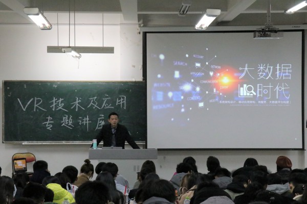 讲座中,吕老师结合VR技术和发展现状,从大数据时代、人工智能时代和虚拟现实时代谈起,围绕VR的概念及发展历程、VR的相关技术、VR的应用、VR产业发展和人才需求四个方面形象生动的阐述了VR的相应知识和应用。同时,插入了实际案例视频元素,给专业师生带来一种视觉的冲击,深刻的感受到了VR技术带来的震撼性的改变。最后,吕老师还与学生们进行了互动问答,耐心解答了学生们关心的问题。