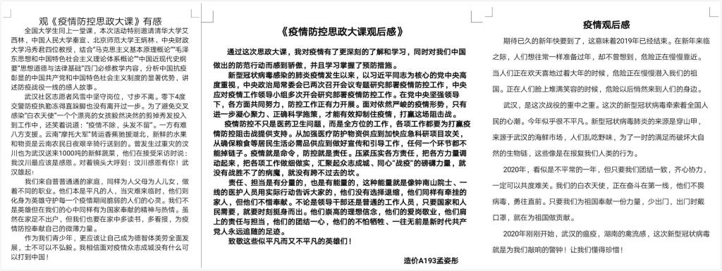 为将高校思想政治理论课教学优势转化为支持防疫斗争的强大力量,坚定在以习近平同志为核心的党中央坚强领导下打赢这场疫情防控人民战争、总体战、阻击战的信心和决心,深刻认识中国抗疫彰显的中国共产党领导和中国特色社会主义制度的显著优势,全面落实“联防联控”措施,构筑“群防群治”严密防线,坚决打赢疫情防控阻击战。3月9日14:30至16:00,我系组织全体学生观看了由教育部社科司与人民网联合组织的“全国大学生同上一堂疫情防控思政大课”。